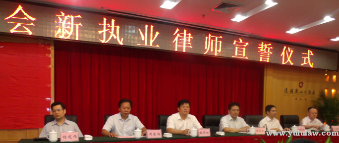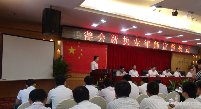 会议开始,全体新律师起立唱国歌,随后全体律师庄严宣誓,会议领导向新律师代表发放律师执业证书。